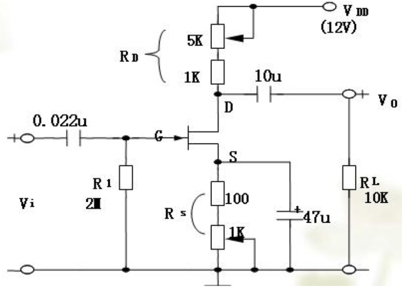 场效应管共源极放大器实验电路图